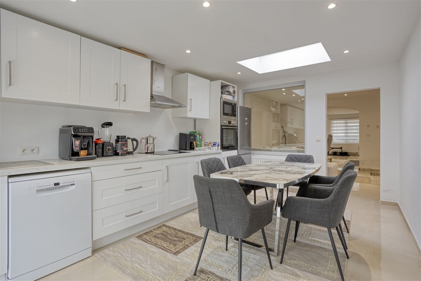 Dès l’entrée, vous êtes accueilli dans un spacieux séjour lumineux avec coin repas. La cuisine moderne, attenante, est équipée d’appareils encastrés de qualité : four, micro-ondes, lave-vaisselle et réfrigérateur-congélateur. Sa conception fonctionnelle offre de nombreux espaces de rangement. Une grande baie vitrée donne accès au jardin arrière, agréable et facile d’entretien. On trouve également à ce niveau un toilette invités et une buanderie.