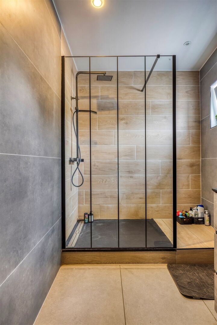 Le rez-de-chaussée vous accueille avec un séjour chaleureux, agrémenté d’un mur d’accent en bois et de grandes fenêtres laissant entrer une belle lumière naturelle. La salle à manger attenante, baignée de lumière grâce à une coupole, communique avec une cuisine entièrement équipée offrant de nombreux espaces de rangement et de travail. Vous y trouverez également une salle de bain moderne avec douche à l’italienne et meuble lavabo élégant et hall d’entrée avec vestiaire et un espace de rangement pratique.