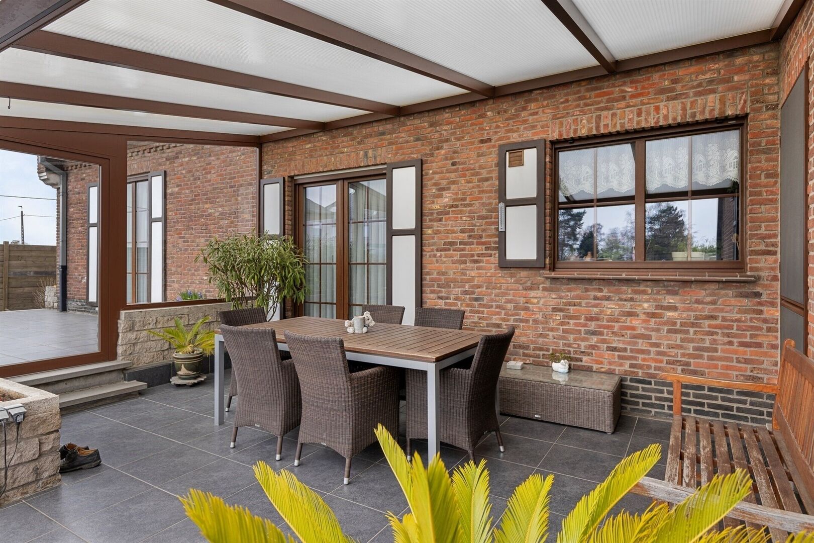 Extérieur: Magnifique jardin orienté sud-est avec terrasse couverte et beaucoup d'intimité.