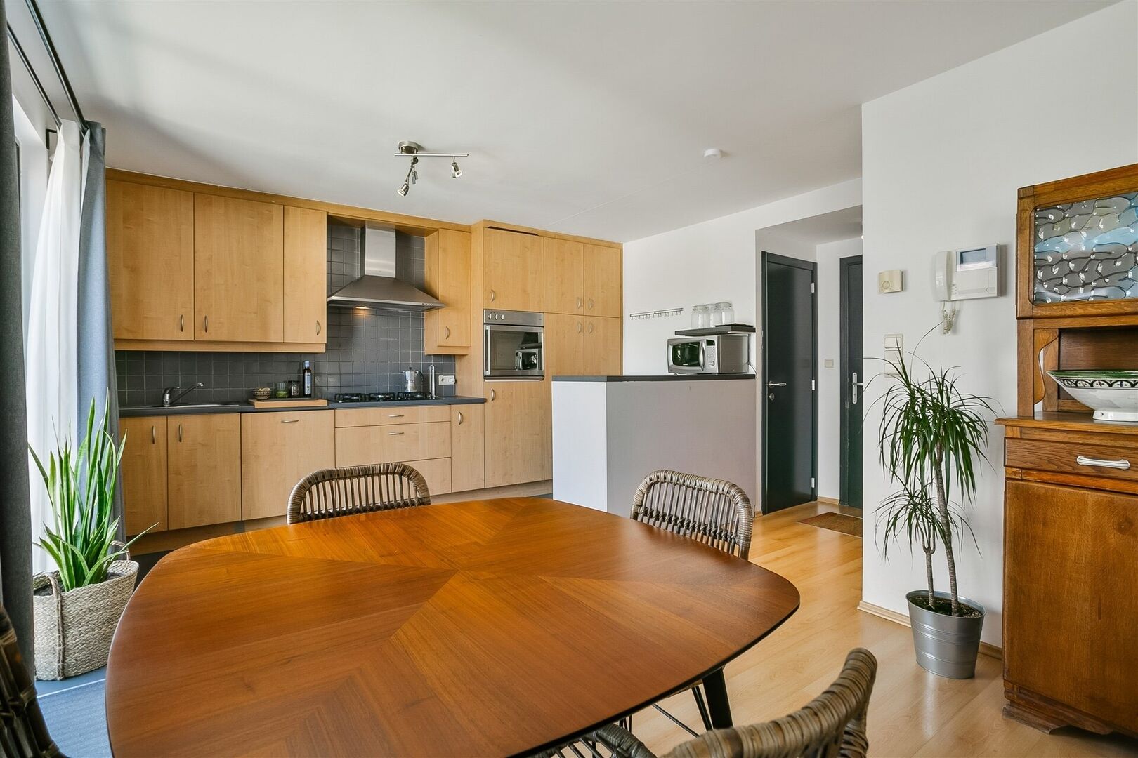 2de verdieping: inkom met gastentoilet, open en volledig uitgeruste keuken, leefruimte en terras.