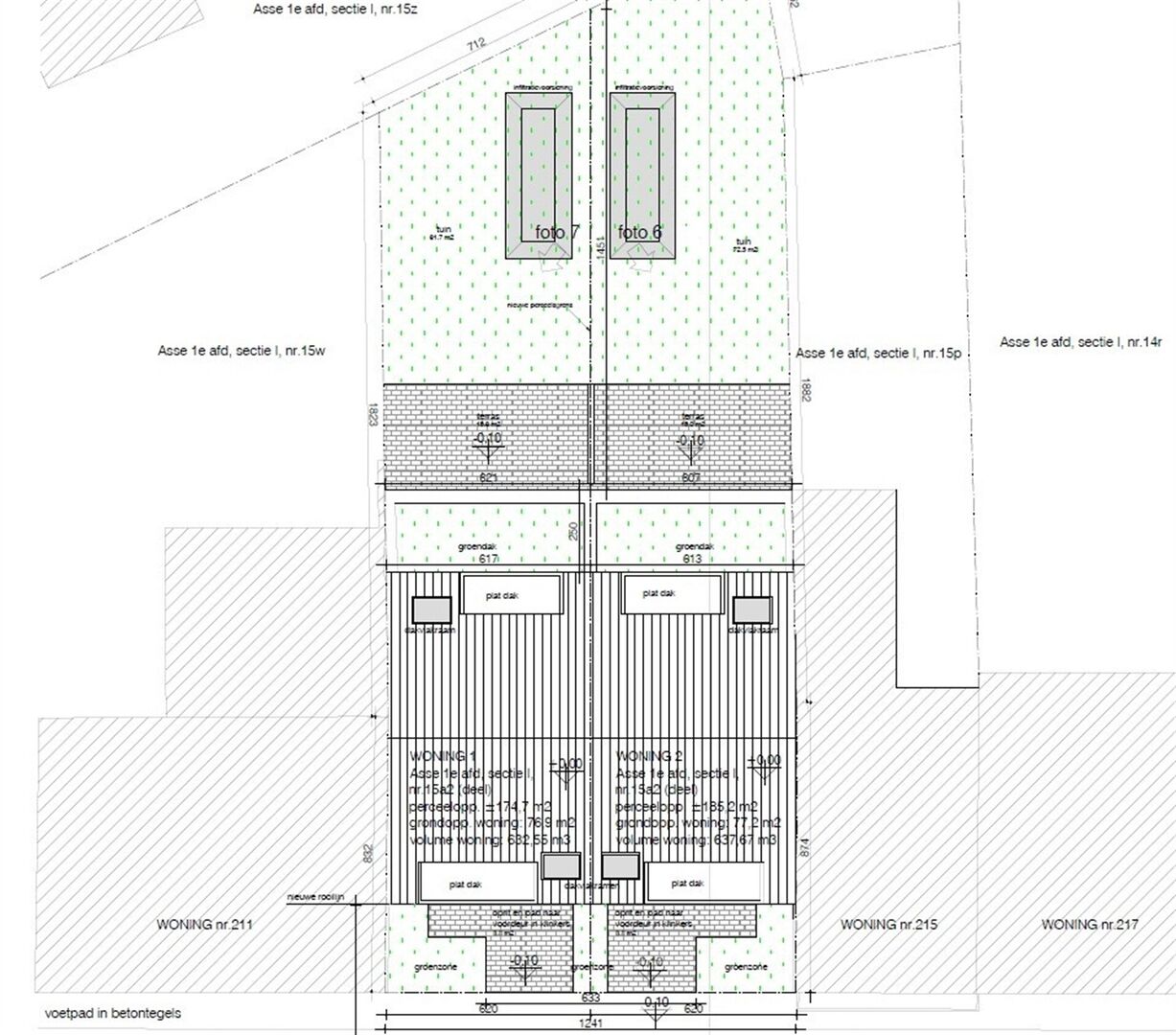 De totale perceeloppervlakte is verdeeld in twee delen van 174,70 m² en 185,20 m².