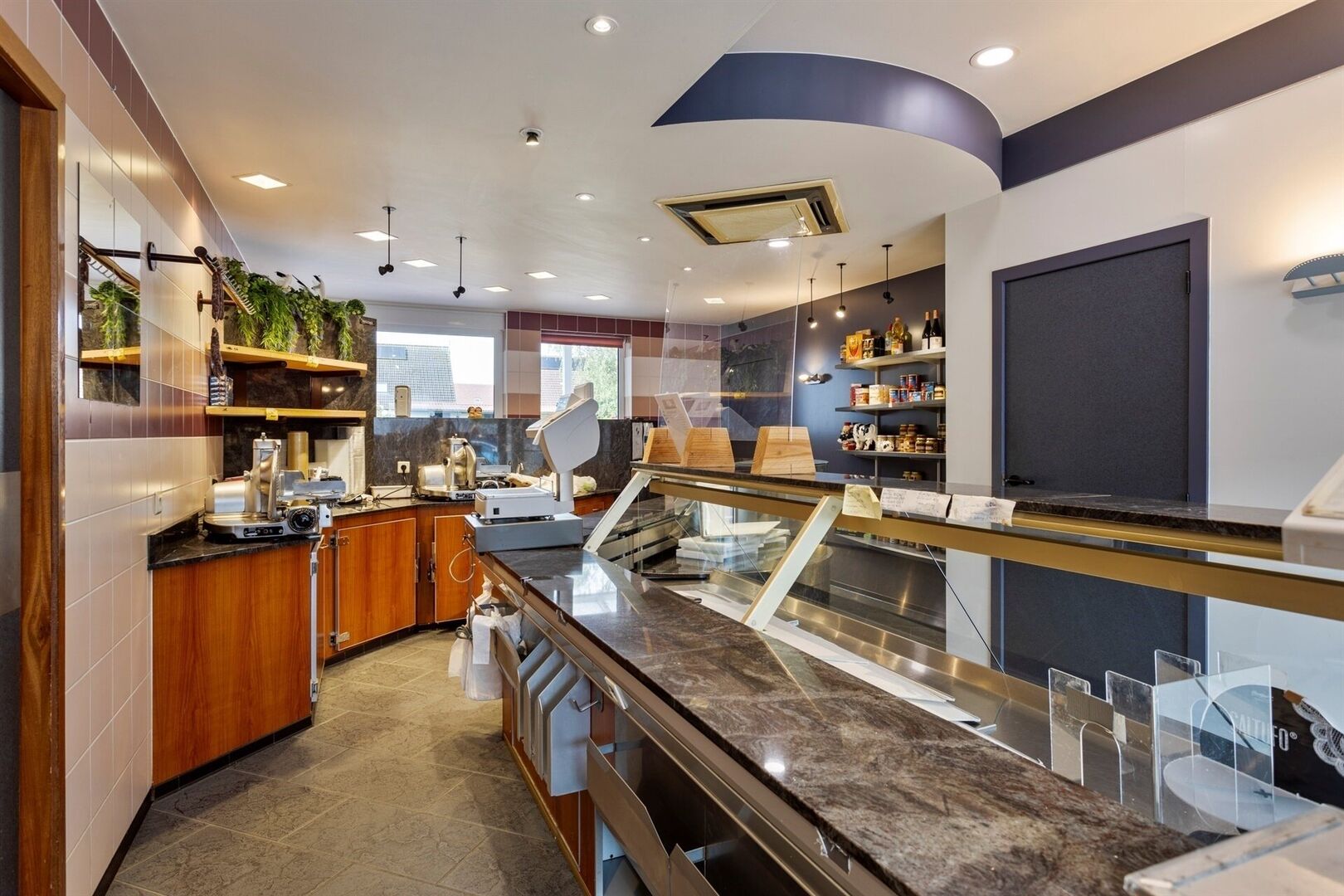 - Aangesloten aan momenteel een slagerij met werkplaats en grote onderkeldering.