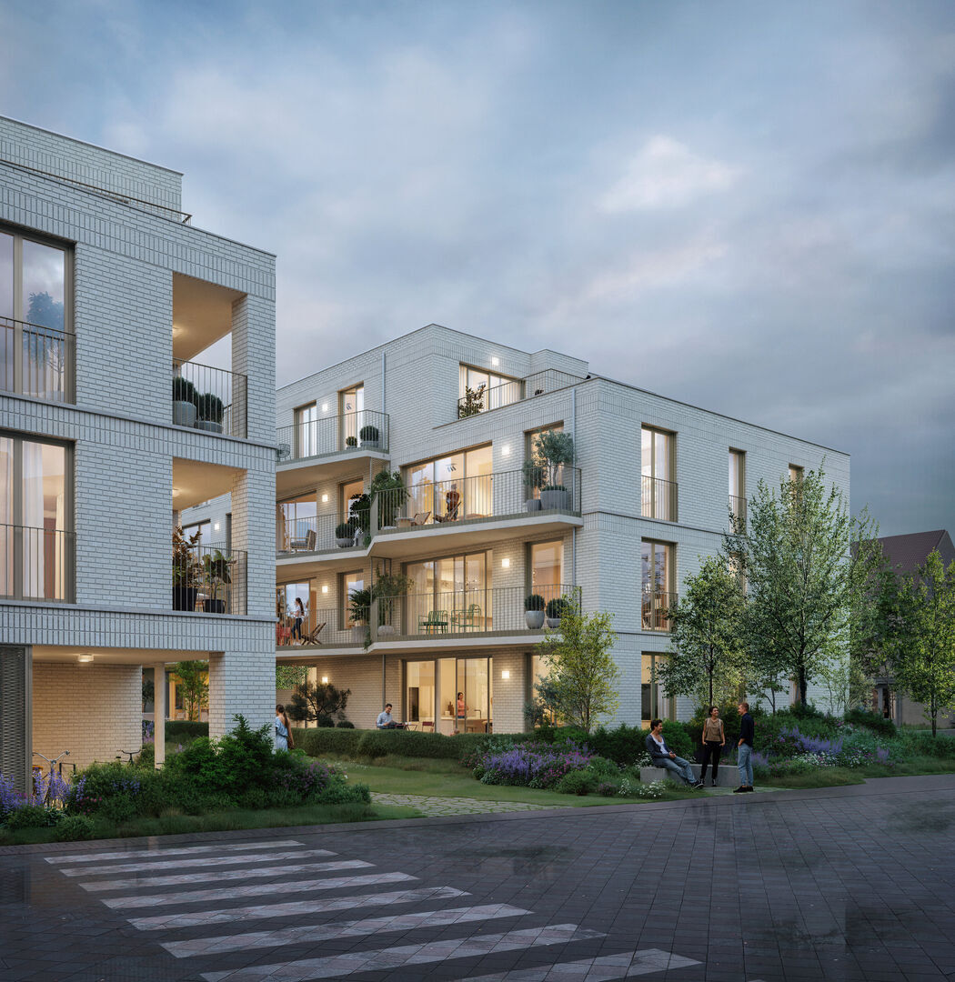De buitenruimtes zijn een echte troef. Ruime terrassen, privétuinen en een gezamenlijke groenzone zorgen voor een ontspannen en gezellige sfeer.