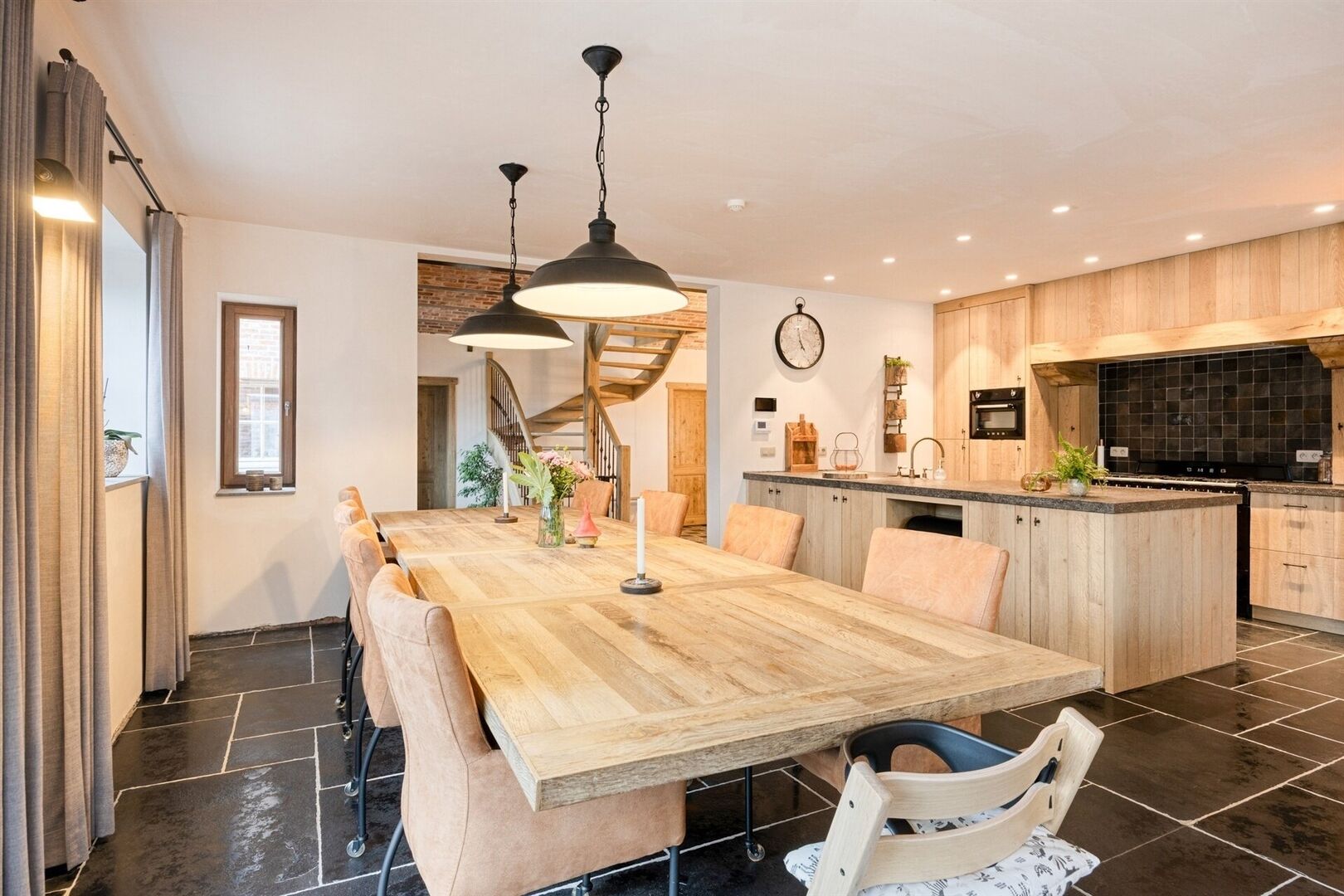 - Afwerking in luxueuze landelijke stijl: natuursteen, eiken deuren, eiken trap, bakstenen gewelven