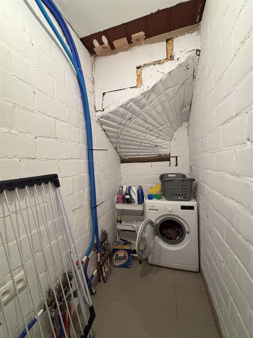 - Gelijksvloers: inkomhal, toilet, bergruimte, garage, twee slaapkamers, badkamer, washok, tuin en terras