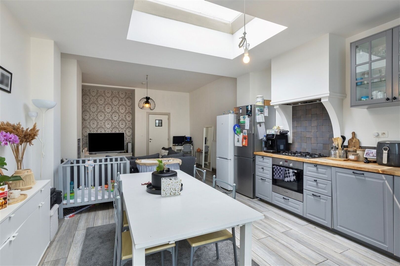 Bij binnenkomst wordt u verwelkomd door een lichte inkomhal die leidt naar de ruime leefruimte. De open indeling van de woonkamer en eetkamer creëert een gezellige en uitnodigende sfeer. Dankzij het grote dakraam baadt de ruimte in natuurlijk licht, wat een warme ambiance versterkt.