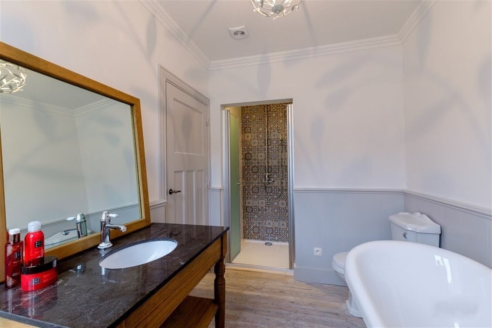De moderne keuken is volledig uitgerust en voorzien van stijlvolle kasten en werkbladen, ideaal voor de kookliefhebber. Grote openslaande deuren leiden naar de charmante achtertuin, waar u kunt ontspannen en genieten van de buitenlucht. De tuin biedt voldoende ruimte voor buiten dineren en tuinieren. De eerste verdieping herbergt een comfortabele slaapkamer en de badkamer, stijlvol en praktisch ingericht, met een stijlvolle wastafel en een moderne inloopdouche. Hier kunt u heerlijk ontspannen en genieten van uw moment van rust.