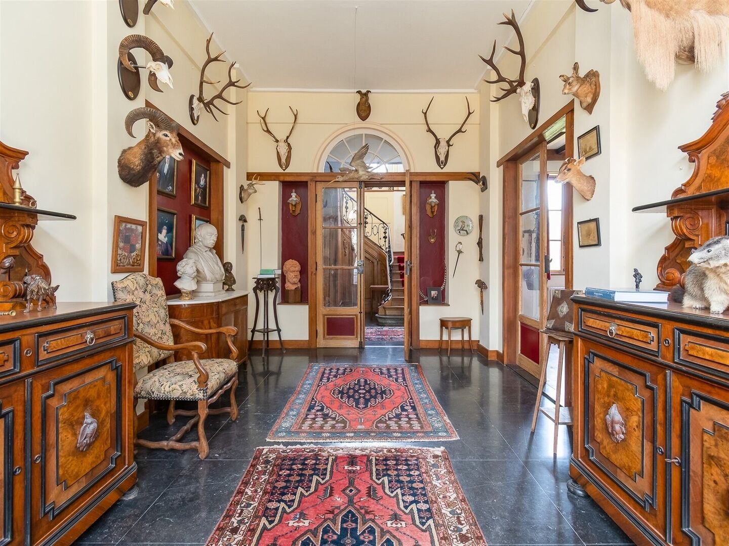 Het kasteel, met een bewoonbare oppervlakte van +/- 550m² bestaat op het gelijkvloers uit een riante inkomhal met authentieke kasteeltrap, verscheidene aangename woonkamers allen in harmonie met het domein en parktuin, leefkeuken, orangerie, bibliotheek, bureelruimte, 8 slaapkamers, 2 badkamers. De authentieke kasteelkelders, lenen er perfect toe uw bewaarwijnen in ideale omstandigheden te stockeren. Verder treffen we nog een wasberging, dubbele garage, stookruimte en werkhuis aan.