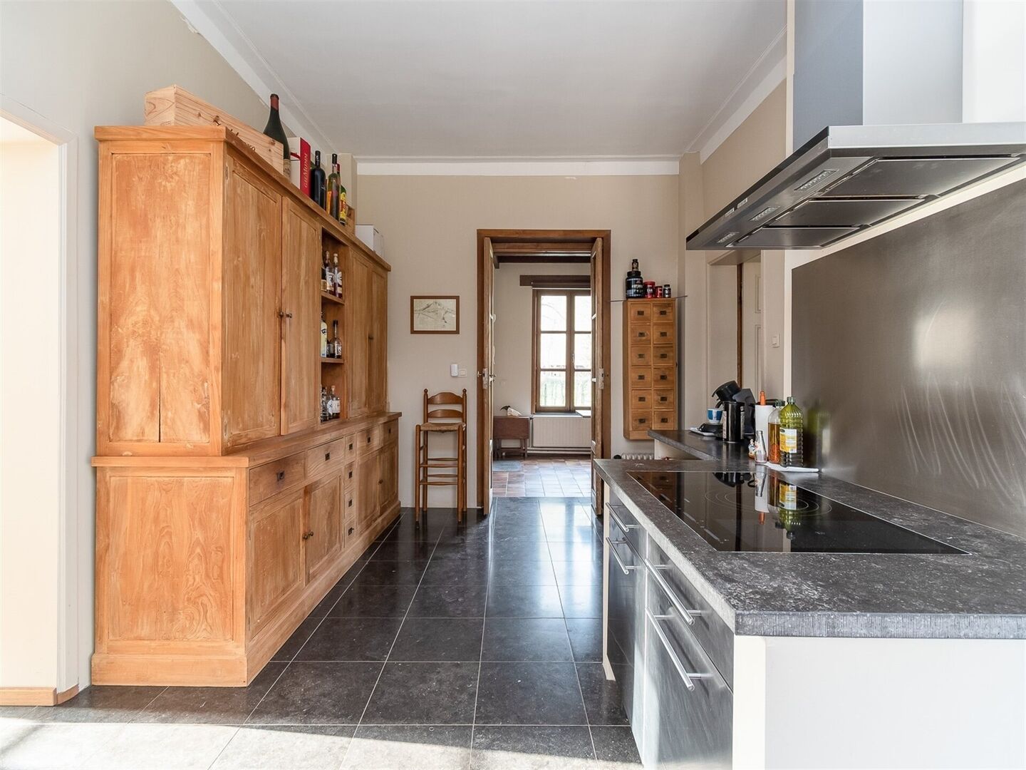 De orangerie, met privatieve zonnetuin en met een bewoonbare oppervlakte van 250m², werd recent gerenoveerd en bestaat uit een inkomhal, woonkamer, keuken, berging, 3 slaapkamers, dubbele garage. Verder treffen we hier aanpalend een conciërge woning aan van +/- 150m². Op dit moment worden deze eigendomen verhuurd.