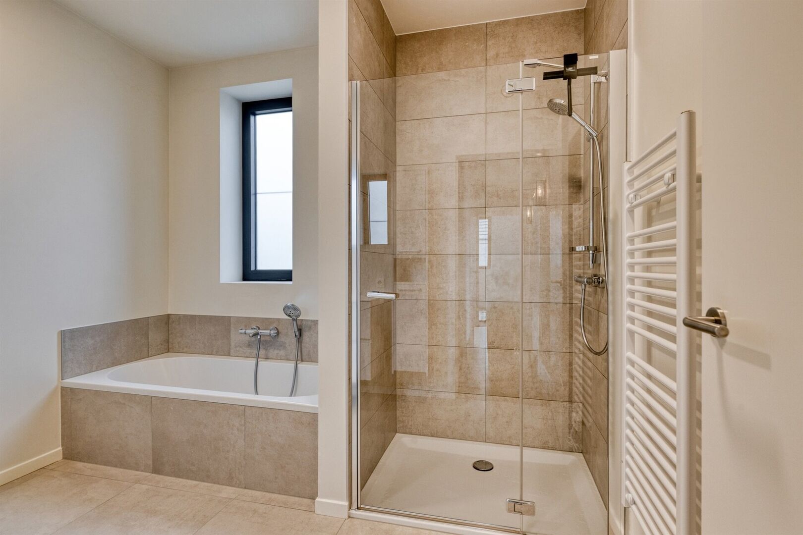 De woning telt vier ruime slaapkamers, elk ontworpen met oog voor comfort en rust. De master bedroom is uitgerust met een praktische ingebouwde dressing. De badkamer ademt luxe dankzij de dubbele wastafel, het ligbad en de ruime inloopdouche.