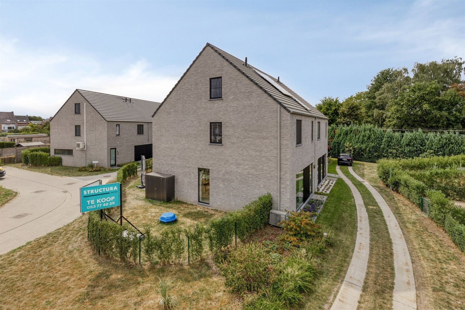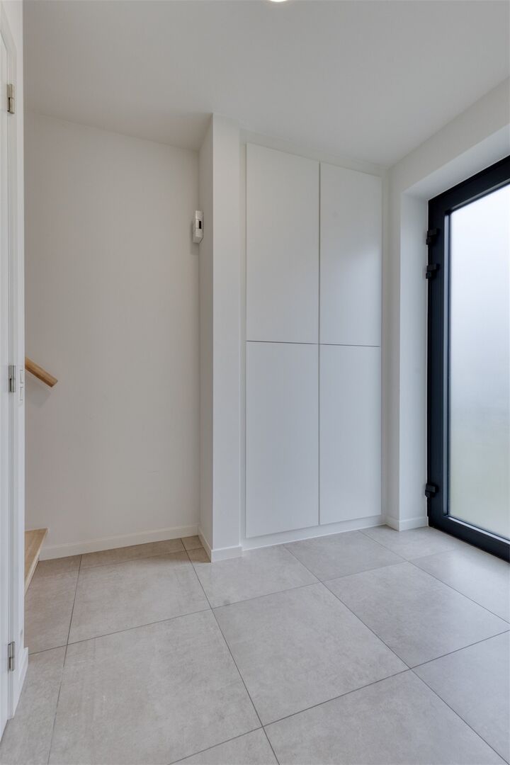 Deze moderne gezinswoning combineert stijlvol design met hedendaags wooncomfort, ideaal voor wie houdt van ruimte, licht en een hoogwaardige afwerking. Bij het binnenkomen wordt u ontvangen in een uitnodigende inkomhal die u meteen doorleidt naar de open leefruimte. Grote ramen zorgen voor een zee van natuurlijk licht en creëren een warme, huiselijke sfeer. De woonkamer vormt het hart van de woning: een perfecte plek om te ontspannen met het gezin of gasten te ontvangen.