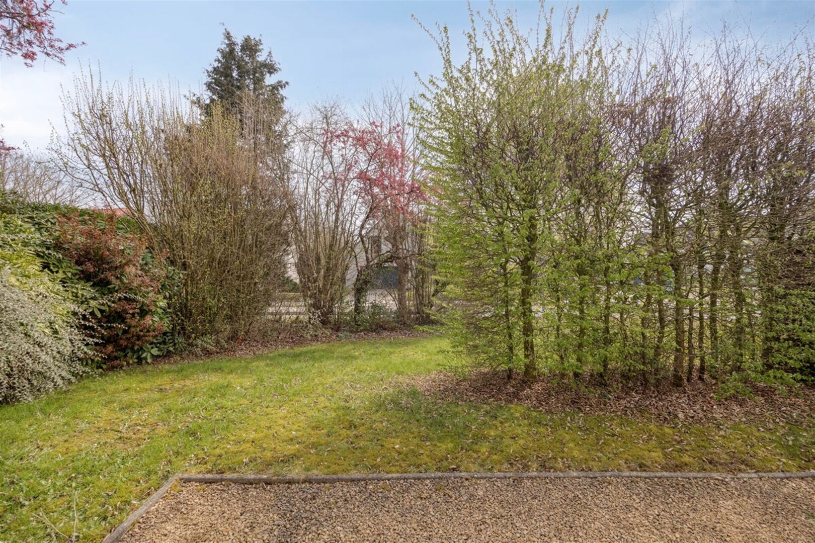 Inkomhal met vestiaire en apart toilet, leefruimte met open haard, aparte keuken, drie slaapkamers (18 m², 12 m² en 9,15 m²), badkamer en bureau (8m²). Zuidgeoriënteerd terras, te bereiken via de leefruimte. Mooie tuin rondom de woning.