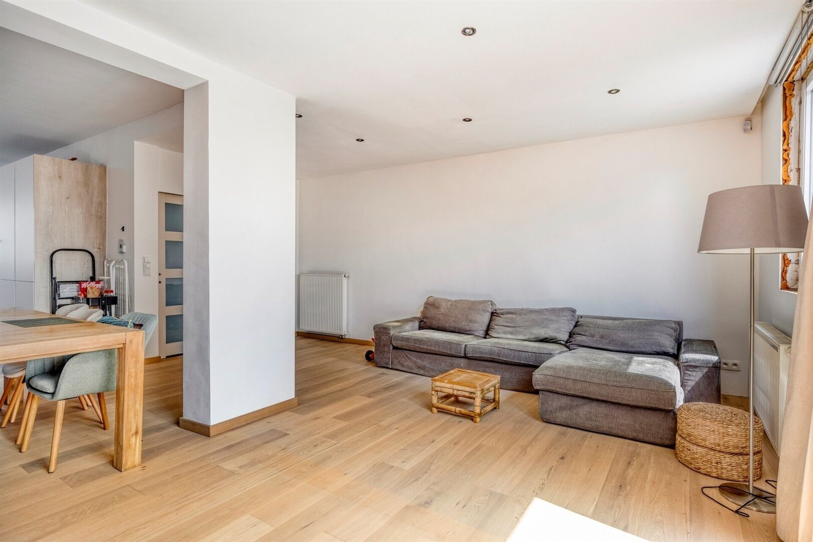Bij het betreden van de woning kom je in een verzorgde inkomhal met gastentoilet. De ruime leefruimte baadt in het licht dankzij de grote ramen en schuifraam naar het terras en de tuin. Aansluitend vind je een gezellige eetplaats en een volledig uitgeruste, moderne keuken met kwaliteitsvolle toestellen en veel opbergruimte.