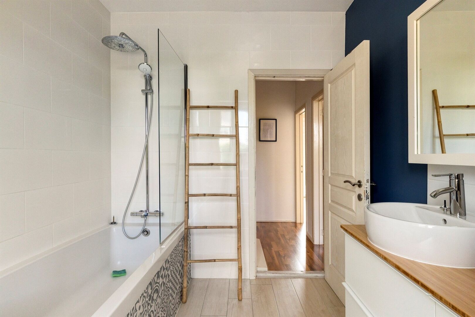 De zolderverdieping werd volledig ingericht als derde slaapkamer met een ensuite douchekamer, ideaal als masterbedroom of studio voor tieners of gasten.